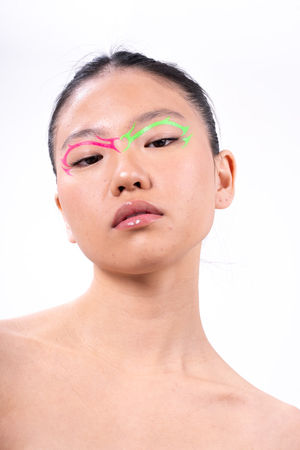 Producción y edición fotográfica sin retoque para las redes sociales de esta marca de maquillajes. La producción se realizó con fondo blanco y luz envolvente para mostrar los colores reales y luego con luz ultravioleta para verlos brillar.